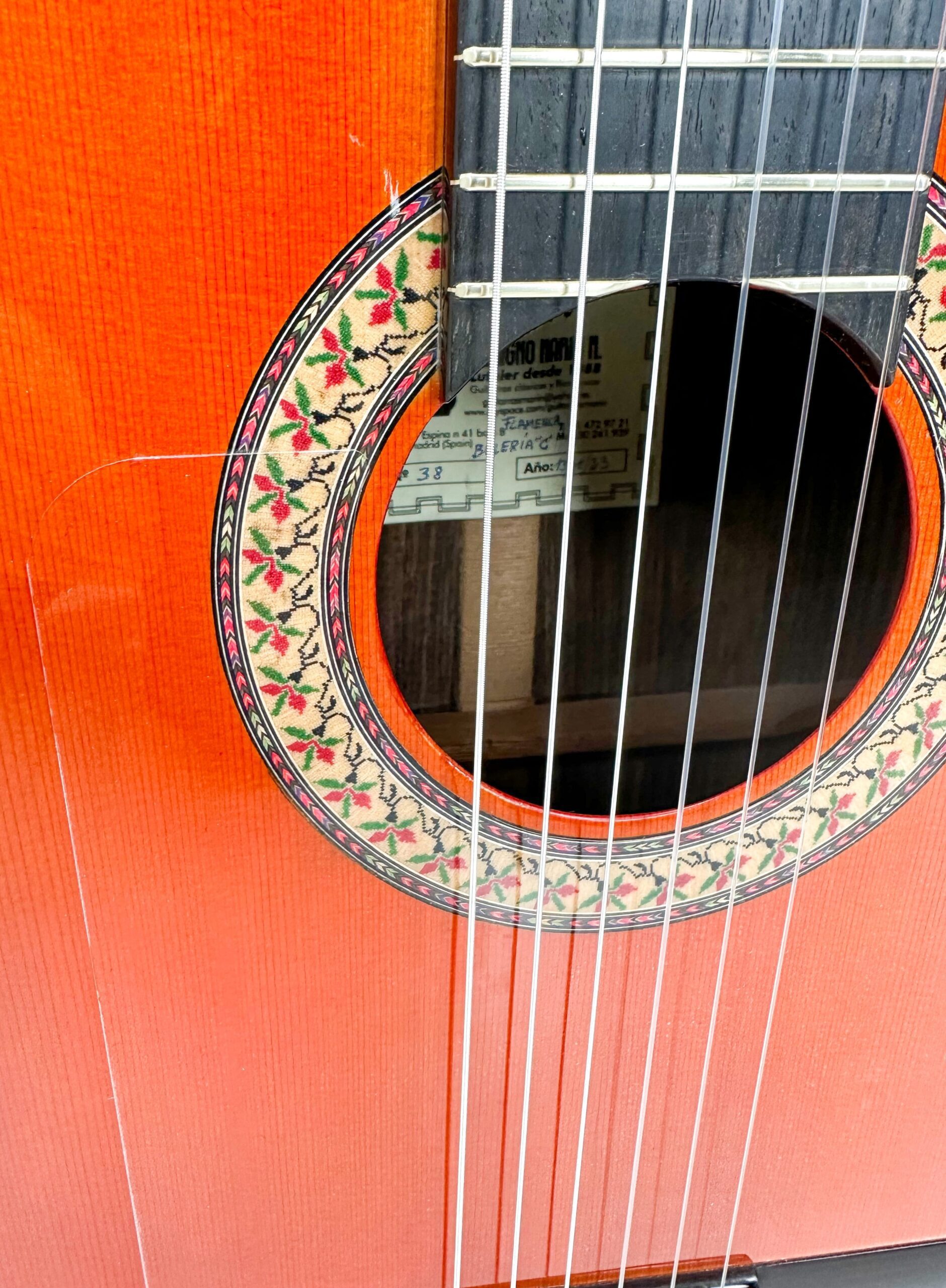 Guitarra Flamenca de Benigno Marín Roja de Palosanto y tapa de Pino Abeto Alemán del 2023